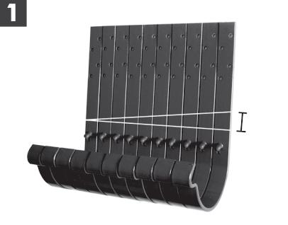 Je chvíle připravit na montáž okapové žlaby. Ochrannou folii předběžně nestahujeme celou, ale pouze tam, kde budeme žlab upravovat. Připravíme si žlabové čelo. Nyní je montáž žlabového čela ještě rychlejší a jed-nodušší, a navíc nevyžaduje použití těsnicí hmoty. OKAPOVÝ ŽLAB Okapový žlab je klíčovým dílem, a to nejen proto, že je od něj odvozen název celého systému.