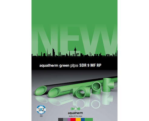AQUATHERM GREEN PIPE. The innovative green pipe from aquatherm is made of corrosion-resistant, chemically inert polypropylene. It is completely free of heavy metals and toxic chemicals and thus ideally suited for potable water applications.